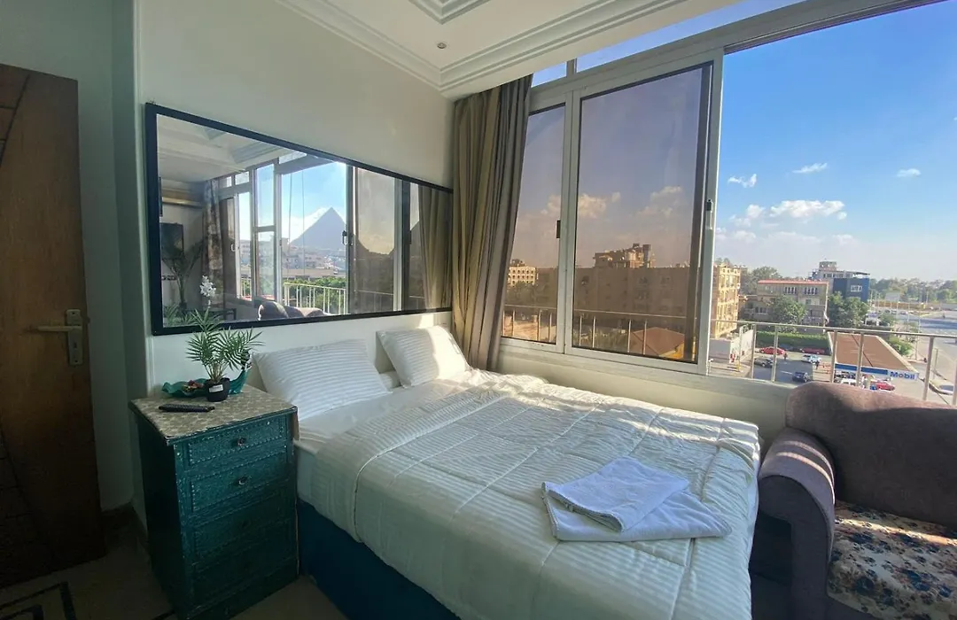 Guest House A Pyramids View includes a balcony and a dressing area with an air conditioner for utmost comfort. Guests staying in this apartment will enjoy the convenience of a hairdryer, dressing gowns, and shower caps in the bathroom. Additionally, you'll find a bidet.
